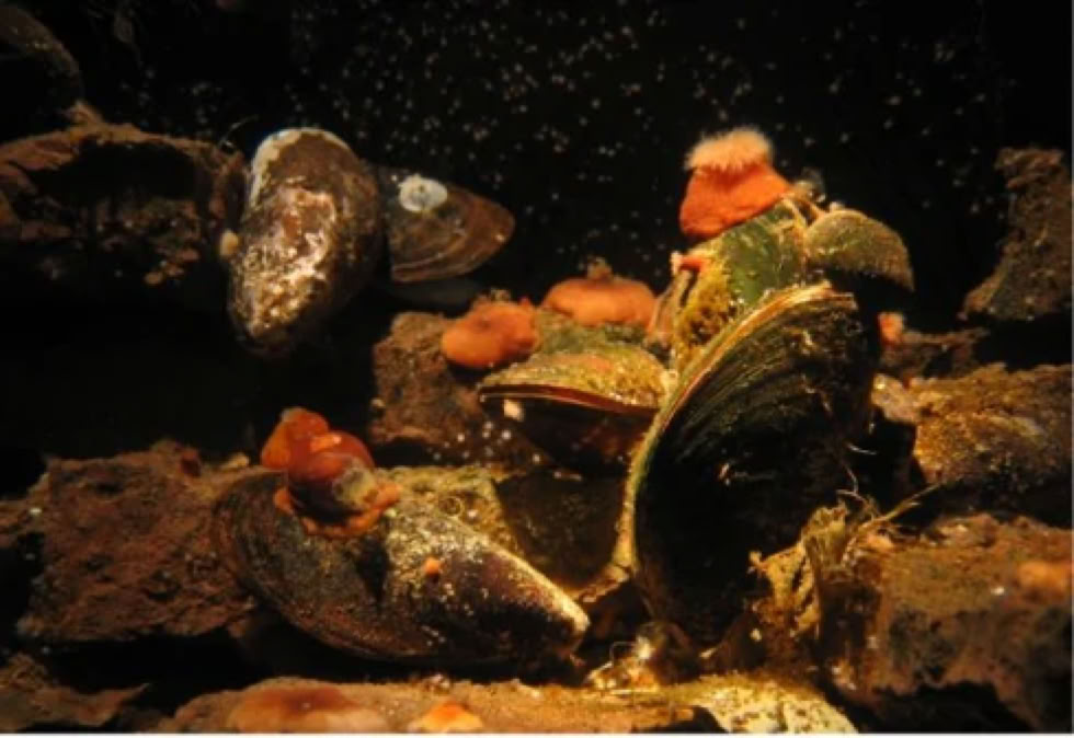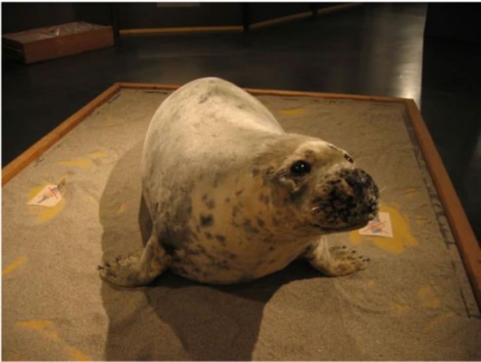 Vorne Fische aus der Karpfenfamilie, hinten die Robben!