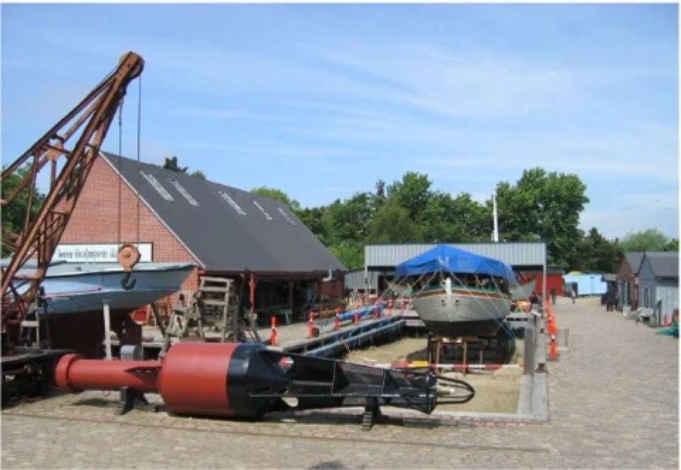 Im Außenbereich kann man eine alte Schiffswerft sehen, die auch heute noch von Mitarbeitern betrieben wird, denen man über die Schulter schauen kann.