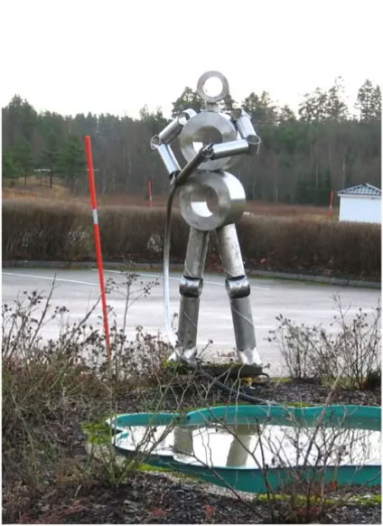Skulptur vor dem Feuerwehrhaus Färgelanda (Dalsland, Schweden)