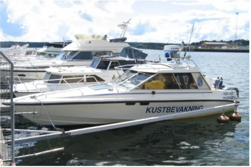 Einsatzfahrzeuge, die beim jährlichen Powerbootrennen in Mora in Bereitschaft stehen. Was auch Notwendig ist, weil die Piloten ein hohes Risiko eingehen.