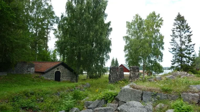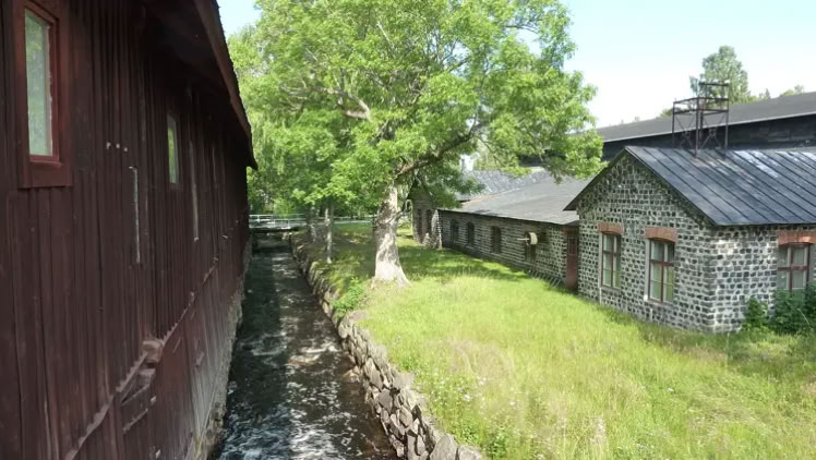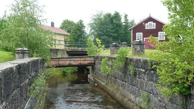 Alte Gebäude, aus der Zeit, als Långshyttan noch eine große Stadt mit Eisenverhüttung war.