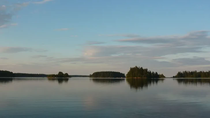 Abendstimmung über der Bucht von Hillevik mit seinen vorgelagerten Schäreninseln.