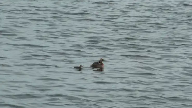Zuerst nutzte ich meine Zeit am Badeplatz zum lesen und dem Beobachten der Wasservögel, wie hier den Zwergtauchern, die die Kücken auf dem Rücken vor Raubtieren schützen.