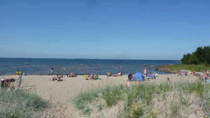Aber auf dem Parkplatz zwischen Badeplatz und Stichstraße kann man prima Übernachten, was ich auch tat. Zuerst traute ich mich nicht ins Wasser, weil ich befürchtete, dass das Wasser der Ostsee sehr Kalt sein würde, und die Ostsee, zumindest, an der deutschen und dänischen Küste eine hohe Quallenpopulation hat. Vor Jahren hatte ich in Dänemark meine Erfahrung mit den Näseln der roten Feuerqualle (gelbe Haarqualle) gemacht. Seit dem meide ich die Ostsee. Nachdem aber ein Einheimischer kam, um seiner abendlichen Körperpflege nachzugehen, tauchte auch ich einen Fuß ins Wasser. Und siehe da, das Wasser war alles andere als Kalt. Die Wassertemperatur musste über 20º C betragen. Dies bestätigte mir auch der Wetterbericht im Fernsehen, wonach die Temperatur an der nördlichen Ostküste Schwedens 22º C betragen sollte. Quallen waren weit und breit nicht zu sehen, also sprang auch ich ins warme Nass.Wirklich erfrischend war dies, bei den Temperaturen, natürlich nicht.