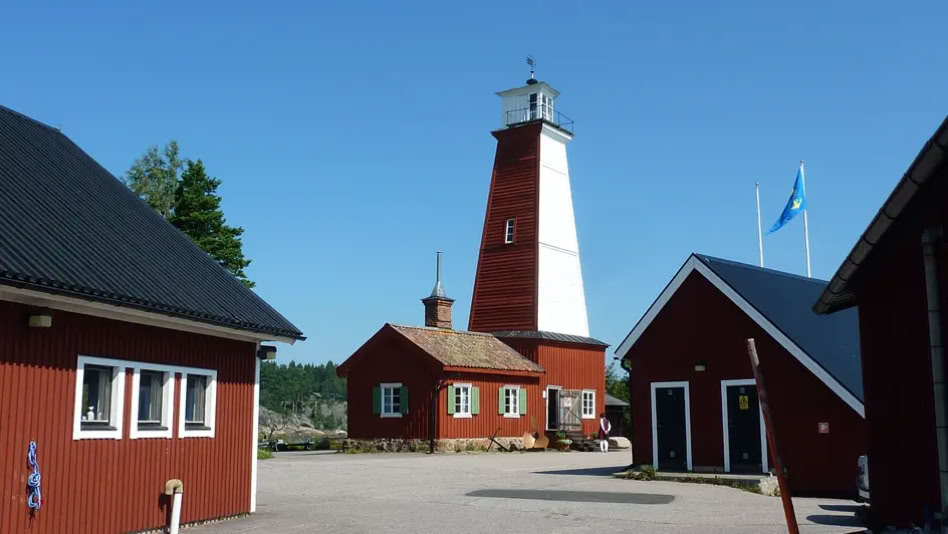 Am folgenden Tag fuhr ich wieder zurück Richtung Gävle. Mein Ziel war der alte Fischerort Bönan, der etwa 10 km östlich von Gävle an der Gävle Bucht liegt. Ich fuhr an der Uferstraße vom Ort aus ostwärts. Ca. 200 m hinter der Bootsbucht bog ich nach rechts zur Lotsenstation (Sjöfartsverket) ab. Von einem kleinem Parkplatz aus ging es zu Fuß zum Leuchtturm. Das touristische Pilgerziel, gegenüber des Parkplatzes, der Åkerblom's Fisk & Rökeri,ließ ich links liegen. Auch wenn es eine der besten Fischräuchereien weit und breit sein soll, ändert es doch nix daran, das ich keinen Fisch esse. Ich begnügte mich mit dem zweitem Highlight, dem alten Holz-Leuchtturm von 1840.