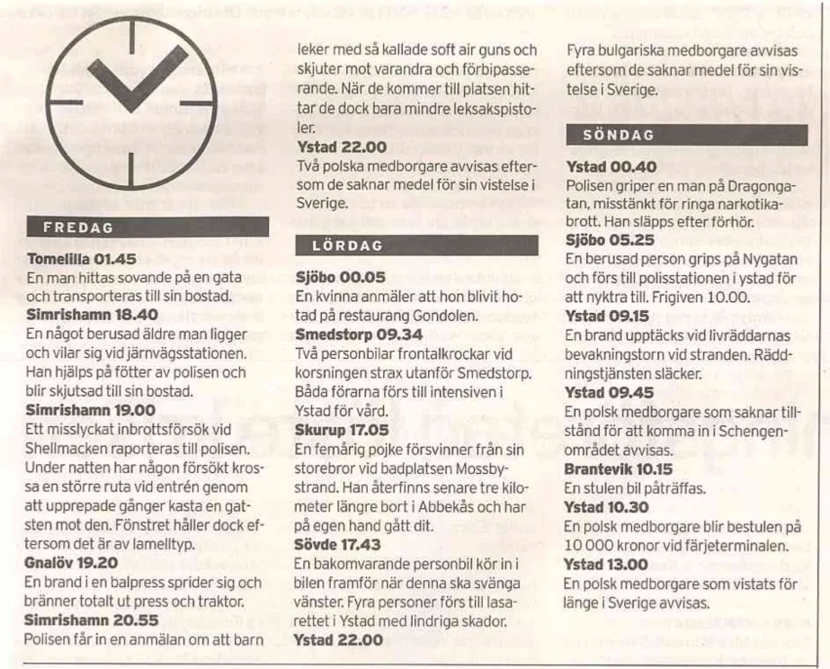 Einen Polizeibericht gefällig? Bitte schön. In derYstads Allehandafindet sich auch dieser: