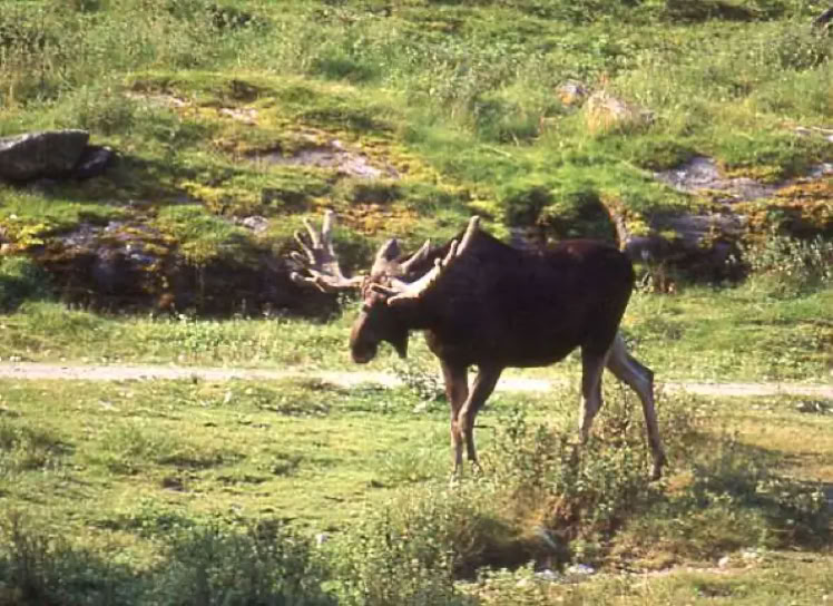 Zwischen Högseter (da wo wir auch den Dachs gesehen haben) und Färgelanda sehe ich gleich eine ganze Herde. 7 Elche stehen dort in einem Getreidefeld und hauen rein was rein passt. 4 Große und 3 Kälber, die ich zwar noch fotografieren konnte, aber aufgrund der Dunkelheit zu schlecht zum einscanen sind. Ich bin so begeistert, weil ich immer gedacht habe, das Elche einzeln durch die Wildnis streifen, dass ich nicht merke, wie ich ein Reh neben mir im Busch erschrecke, welches, ebenso schmackhaft wie scheu, die Flucht ergreift und damit auch die Elche zur Flucht animiert. Mist!