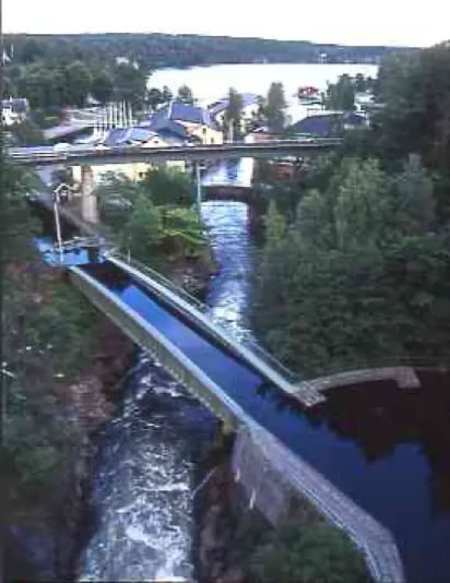 In Håverud schauten wir und das Akveduktan. Wie man an den Autobildern schon sehen konnte hat es in Mittelschweden ziemlich viel geregnet. Beim Akvedukt machte sich das auch bemerkbar. Das Sperrwerk für die Stromerzeugung ist in der Regel täglich um 11:25 Uhr für nur 5 min ganz geöffnet. Wir waren am Abend da und das Wasser schoss immer noch durch die geöffneten Schleusen.