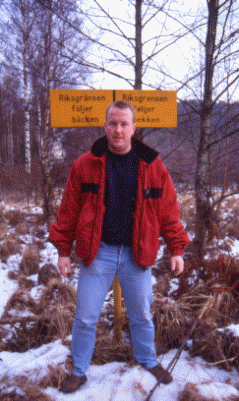 Hendrik mit einem Bein in Schweden und dem anderen in Norwegen>>>