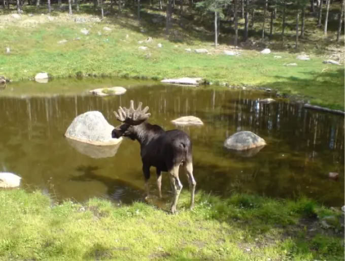 In diesem Zoo kann man auch Elche beim schwimmen sehen: