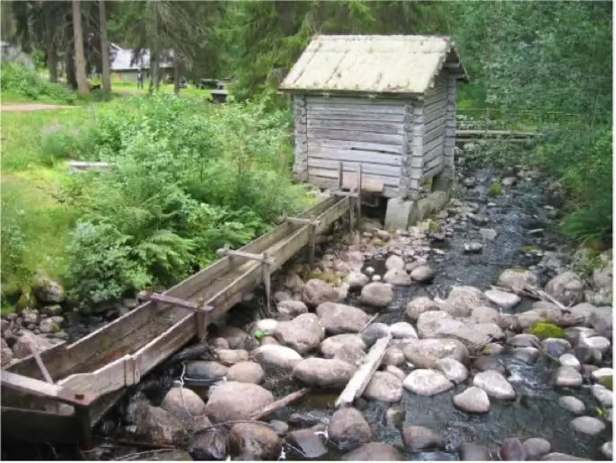 Auf dem Gelände befinden verschieden große Wassermühlen.