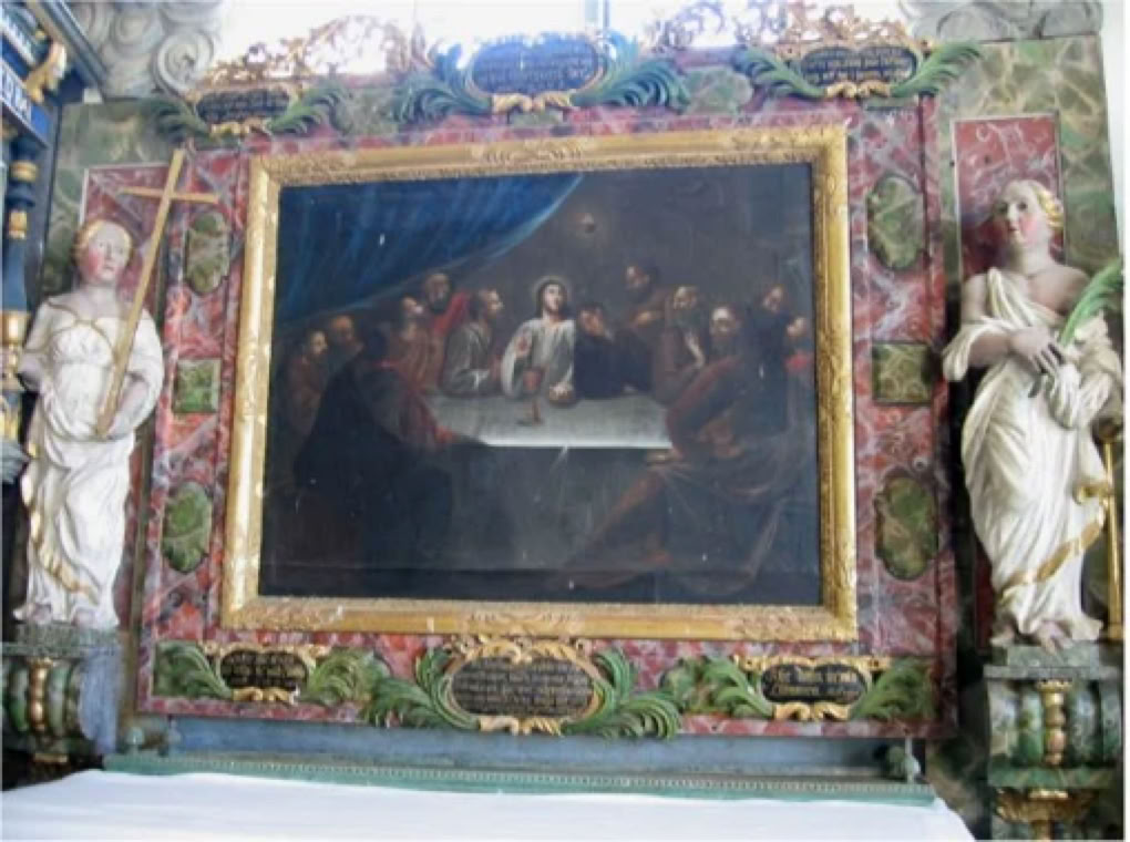 Der Glockenturm wäre vor kurzem beinah ein raub der Flammen geworden. Die Besucherränge gehen über zwei Stockwerke. Der alten Orgel wird noch mittels Fußpedale Luft eingehaucht. Ich bin mir aber nicht sicher, ob diese noch funktionstüchtig ist. In der Regel wird heute wohl das "neumodische" Klavier für die Begleitmusik sorgen.