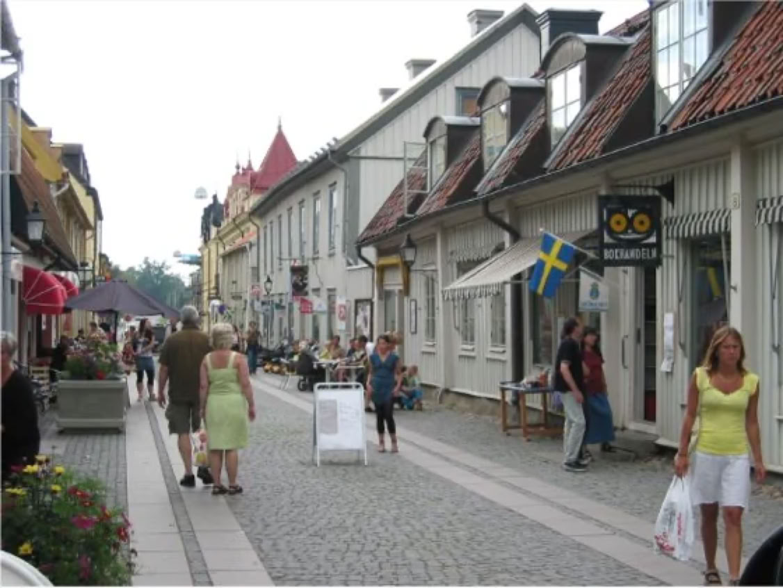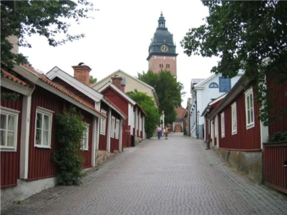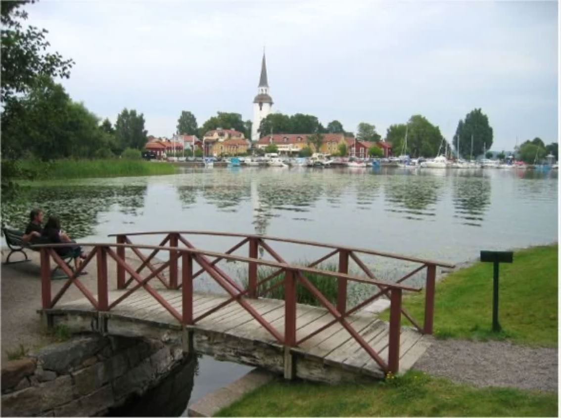 Strängnäs(30.000Einwohner) wurde im 12 Jh. gegründet und galt als eine der wichtigsten Städte des Landes und liegt am südlichen Ufer desMälaren, dem drittgrößten See Schwedens. Die Geschichte der Stadt reicht bis in die Wikingerzeit zurück. Kleine Gassen, Holzhäuser, eine Domkirche und eine Mühle aus dem 17 Jh. sind die Seehenswürdigkeiten dieser Stadt. Die Gyllenhjelmsgatan wird vom DichterBo Setterlindals die schönste Strasse Schwedens bezeichnet. 1624erschien in