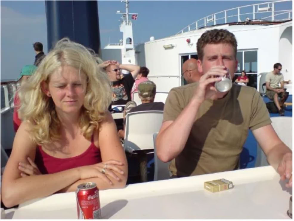 Auf derFähredann noch dieses seltene Bild: Simon mit Dose, aber ohne Bier!