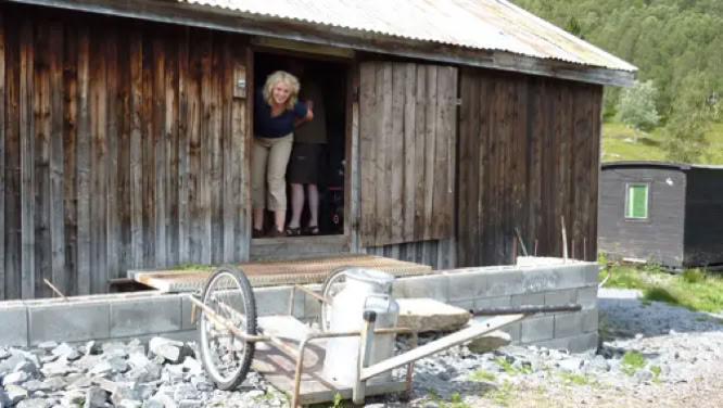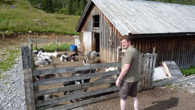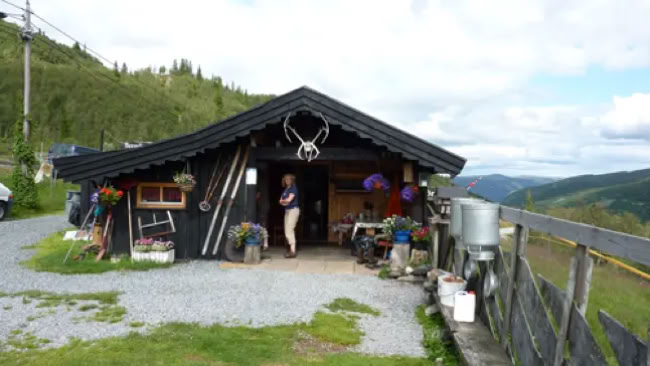 Wir steuerten eine Alm an, die sich auf Ziegenzucht und der Herstellung vonBrunostspezialisiert hat. Und weil die aus Ziegenmilch hergestellt wird, heißt sie "Geitost" und ist eine Spezialität, die die Menschheit und in besonderen die Touristen in zwei Lager spaltet. Die einen mögen das braune Zeug und die anderen nicht.