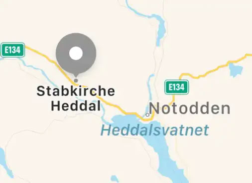Ein Stück weiter führt die E134 an der größtenStabkirche (Stavkirke)Norwegens vorbei, dieStabkirchevonHeddal.