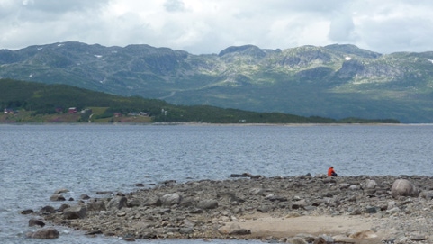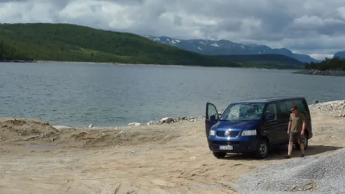 Bei Arabu machten wir weinen Abstecher auf die Halbinsel Bjømsbufjellet, die vomMøsvatnetumschlossen ist. Laut Reiseführer soll es hier einen Womo-Stellplatz am See geben - Pustekuchen. Es handelt sich dabei um einen Steinbruch.