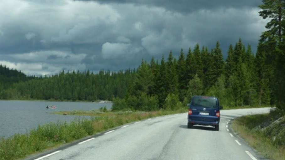 Irgendwann verließ ich die E134 Richtung Norden und bog in die kleine Straße RV 504 ein, einem Wald- und Feldweg nach Åmot. Viele großen Strassen wie die Europastraßen haben schon einiges zum Stauen und Anhalten zu bieten. Will man aber mehr Natur und Wildnis erleben, sollte man immer nach Alternativrouten Ausschau halten.