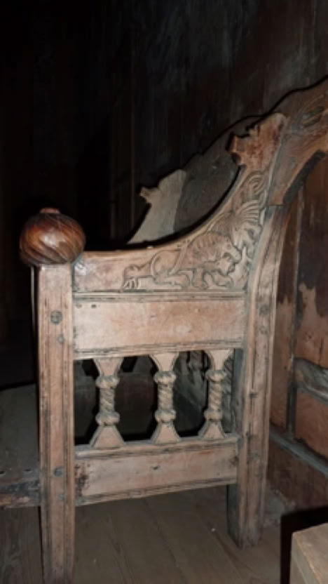 Der reich verzierte Bischofsstuhl.