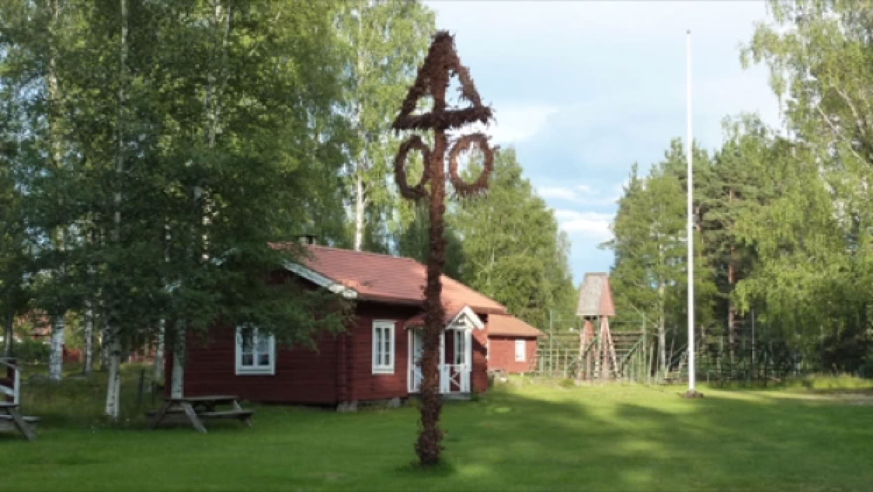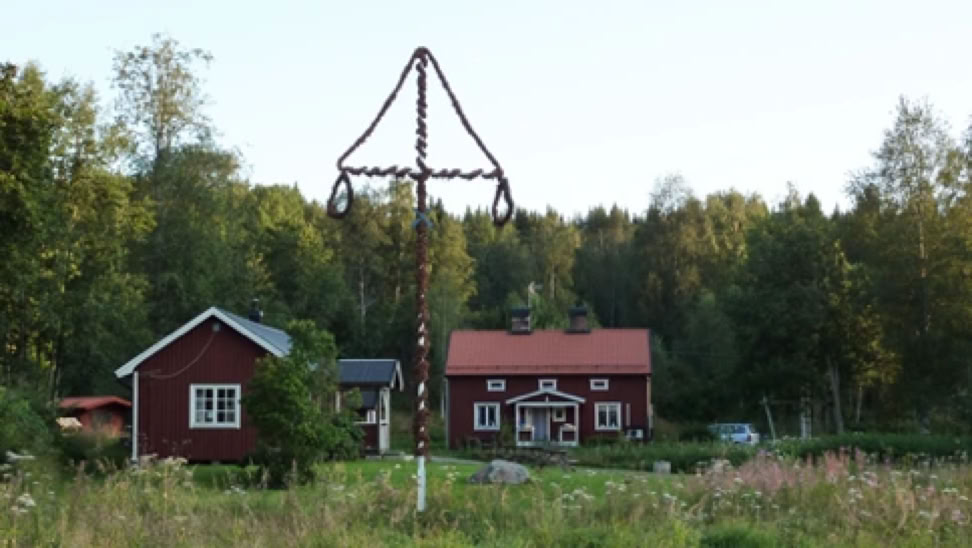Gegenüber des Badeplatzes steht die Majstånge vom letzten Mittsommerfest.