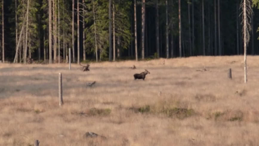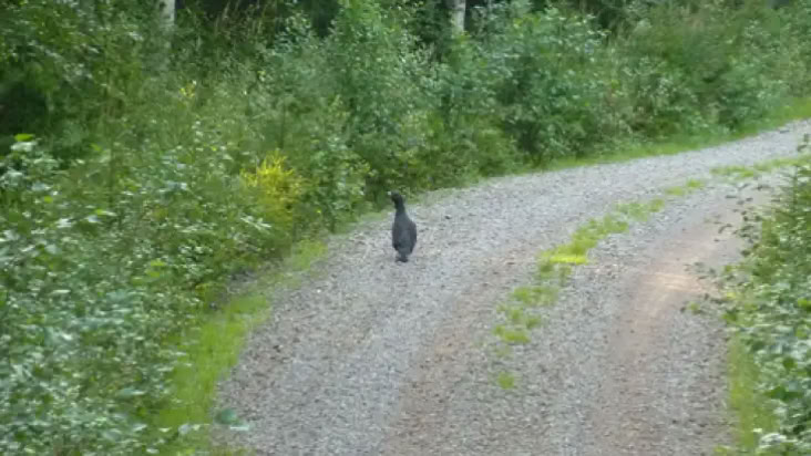 Weil es in Gustavsfors an Übernachtungsmöglichkeiten mangelte, fuhr ich nördlich am Musåudden entlang. Am nördlichen Ufer bei Knoände fand ich dann eine verlassene Campingstelle direkt am Ufer. Mittlerweile war es schon Abend, was heißt, dass einige Tiere ihre Tagesverstecke verlassen. Und so hatte ich Glück und sah in dieser abgelegenen Gegend einenAuerhahnund einenElch.