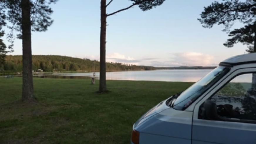 Um dasJedermannsrechtnicht über Gebühr zu beanspruchen, wechsele ich am zweiten Abend den Stellplatz. Hier beiLudvikaverbringe ich die zweite Nacht immer südlich vonGrängesbergam Norr Hörken, Einem großen Badeplatz, aber mit sehr seichtem Wasser, so dass man weit ins Wasser laufen muss, will man Morgens duschen/baden. Und das Plumpsklo ist, wie überall in der Gemeinde Ludvika, sauber und winterfest.