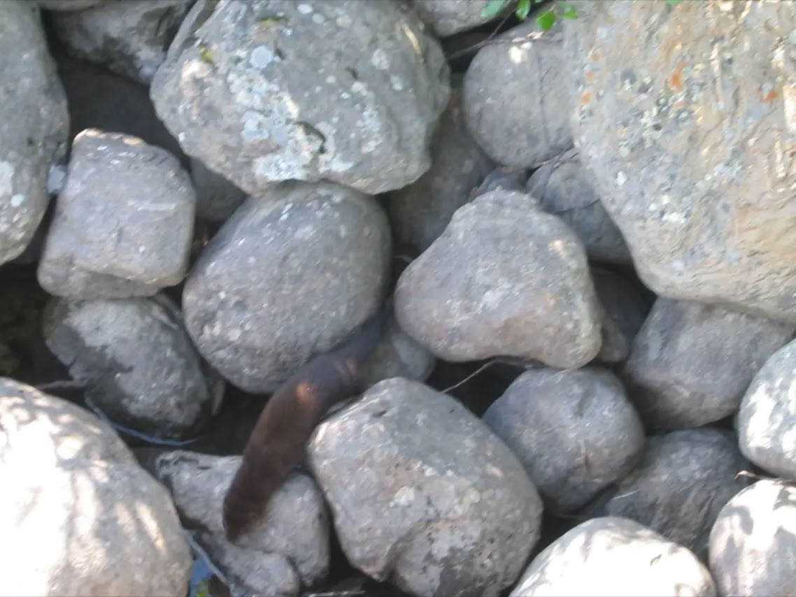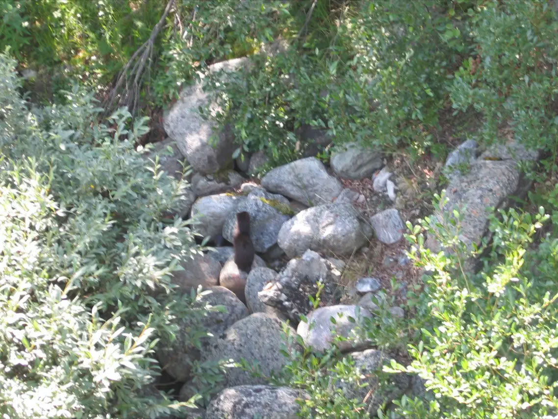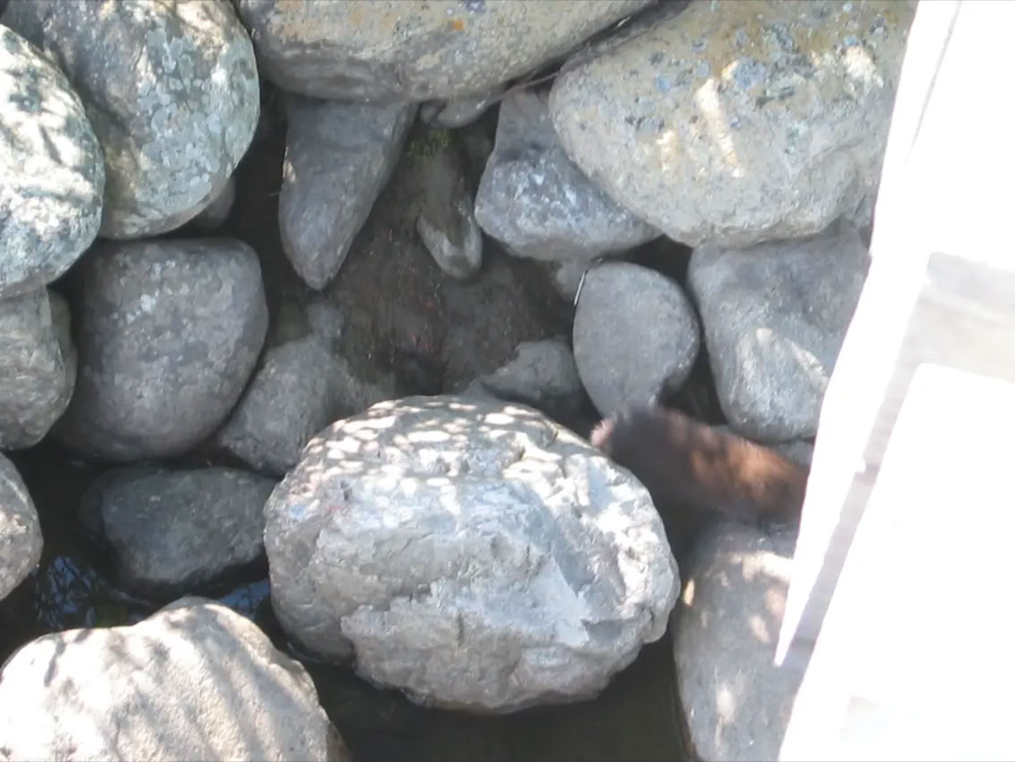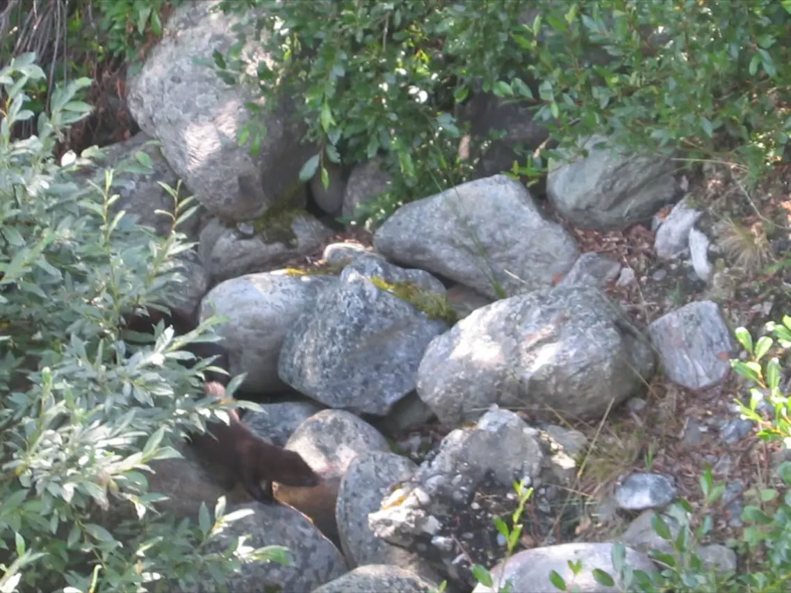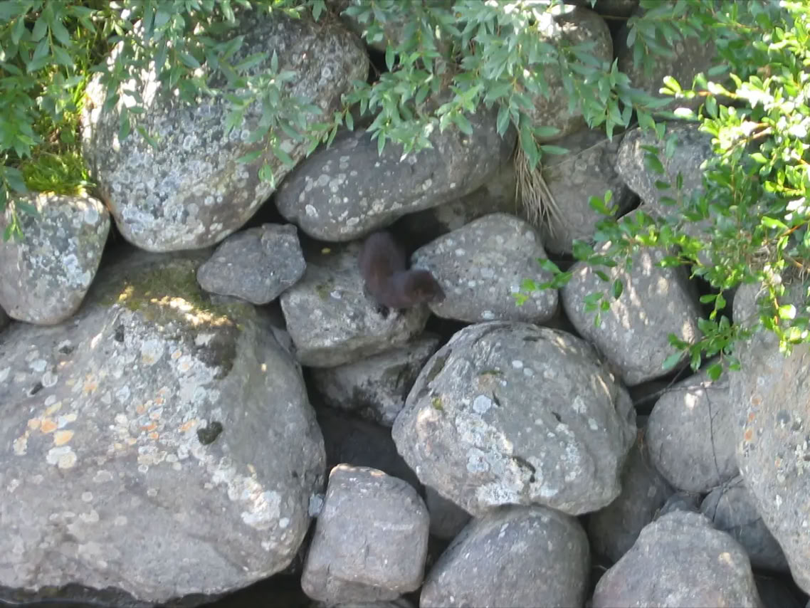Am Westufer sahen wir sechs kleine Nerze, die am Ufer spielten.