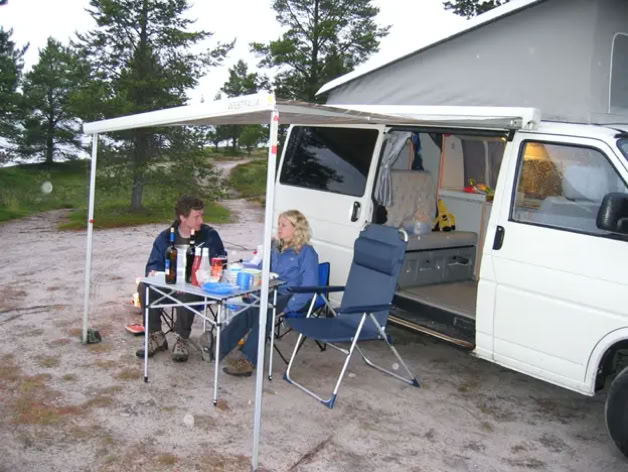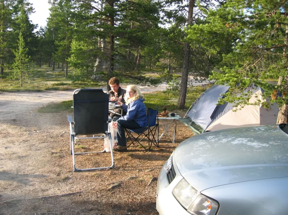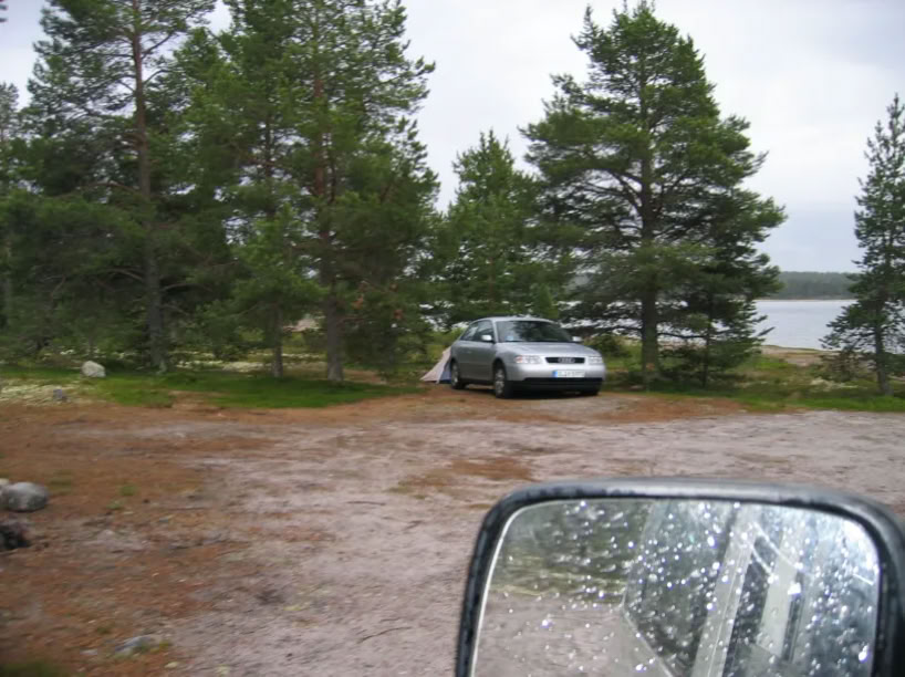 Am Ufer des Femunden treffe ich mich mit Tanja und Simon. Eigentlich ist der offizielle Stellplatz etwas weiter. Aber irgendjemand hat das Verbotsschild geklaut, und so machten wir es uns bequem. Bequem soweit es ging, denn es regnete.