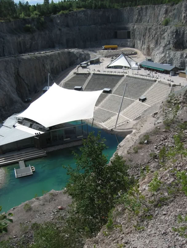 7 km nördlich von Rättvik die Dalhalla, eine Freilichtbühne, die in einer alten Bergwerksgrube gebaut wurde. An diesem Abend gab es ein Konzert einer ABBA Revival Band
