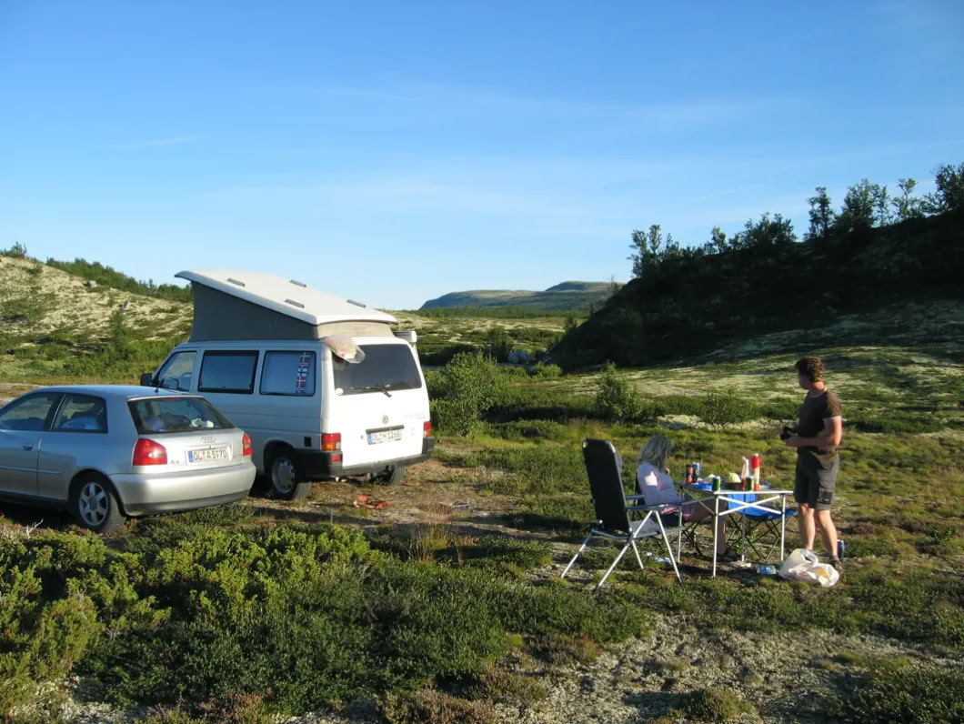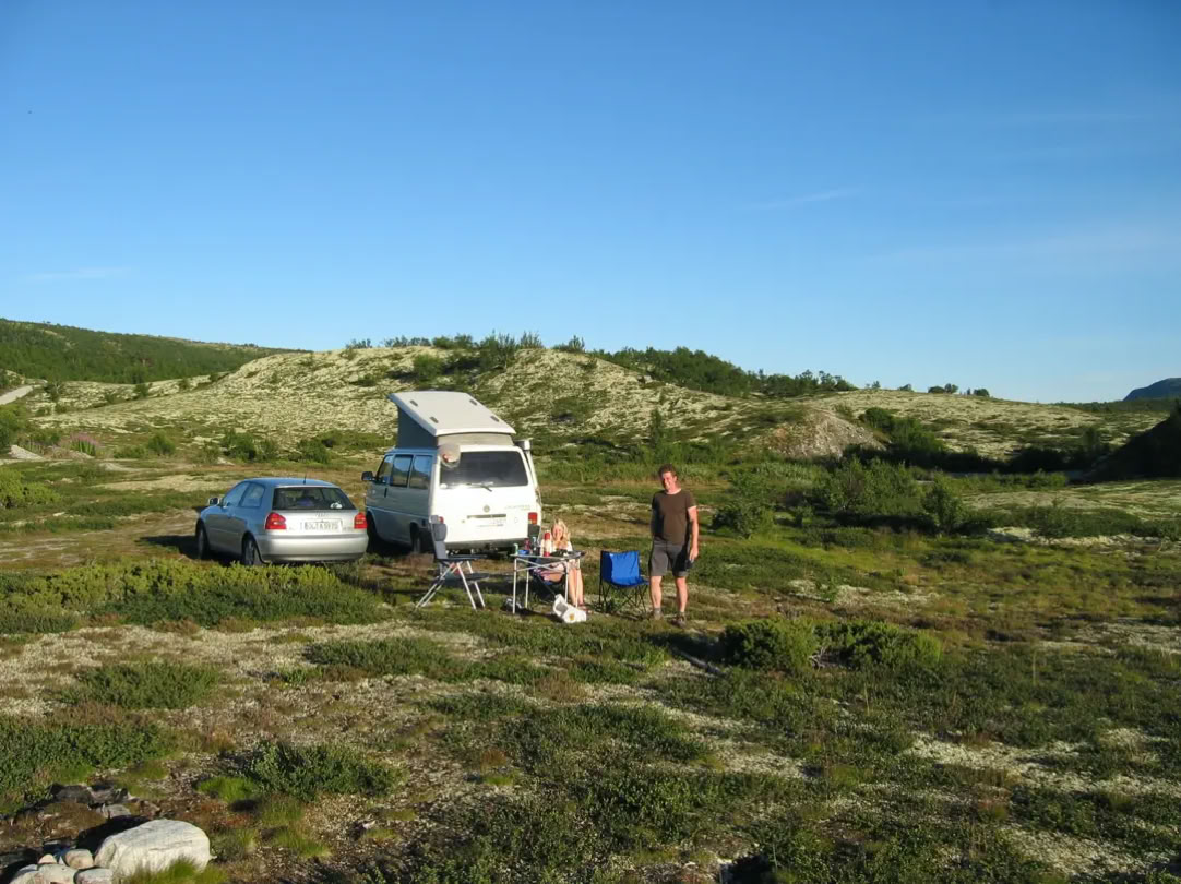 Campen in der Hochebene südlich von Røros. Nachdem die Sonne unterging, fielen die Temperaturen rasch auf 5 Grad ab. ...