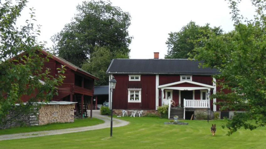 Gleich zu Beginn, wenn man die RV 50 verlässt und nach Klenshyttan abbiegt, steht zur linken Seite dieser alte restaurierte Hof.