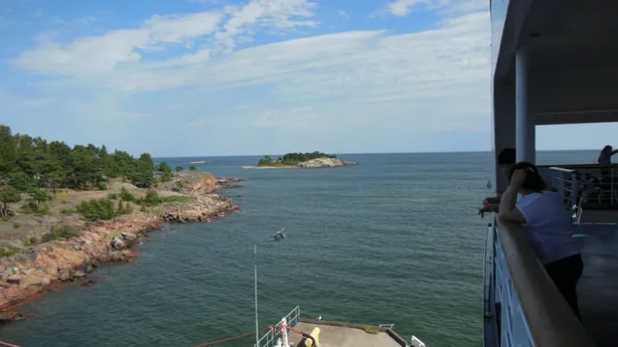 Gleich legt die Fähre ab. Da hinterm Horizont liegt Åland.