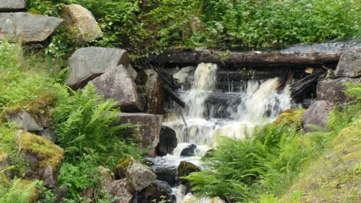 Am See Snyten wendet der Rundweg und führt über ein kleines Stauwehr.