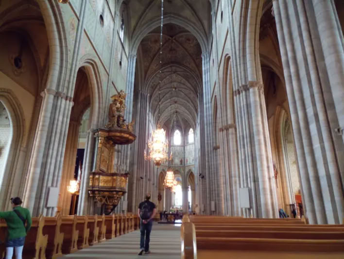 Der Dom ist mit seinen Außenmassen von 119 m Höhe und 119 m Länge der größte Sakralbau Skandinaviens. Im 13. Jh. wurde mit dem Bau begonnen. 1435 wurde er eingeweiht. Als historisches Zentrum des Reiches fanden hier viele Könige und Adelige ihre letzte Ruhestätte. Die berühmtesten dürften der König Gustav I. Wasa und der Naturforscher Carl von Linné sein.