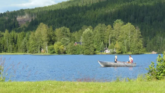 Statt Abendspaziergang rudert dieses Pärchen auf dem Dammsjön