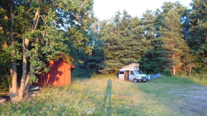 Weil ich nördlich von Storby keine geeignete Übernachtungsmöglichkeit fand, versuchte ich es im Süden der Insel. Nach ca. vier Kilometern bog ich in dem kleinem Ort Torp nach links ab und folgte der Beschilderung nach Skeppsvik. Diese Straße endet mit einem Wendeplatz an einem Schiffsanleger. Ich parkte meinem Camper auf dem schmalen, Gras bewachsenen, Streifen zwischen Wendeplatz und Ufer. Neben einer schönen Aussicht auf die Bucht, besuchten mich während des Kochens eine Reihe von Oldtimern amerikanischer Bauart. Ich vermutete, dass sie zum Verein der "Oldtime Cruisers" gehörten.