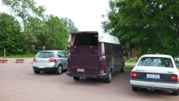 Auf dem Parkplatz des ersten Ladens stand dieses interessante Fahrzeug. Von vorne gesehen könnte es ein Lieferwagen oder Camper sein, von hinten erkennt man, dass der Besitzer den Kastenwagen zu einem Pferdetransporter umgebaut hat. Mir stellte sich hier die Frage, ob es auf Åland einen TÜV gibt.