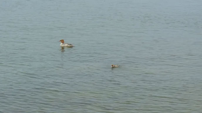 EineHaubentaucherfamiliekreuzte vor mir in der Bucht.