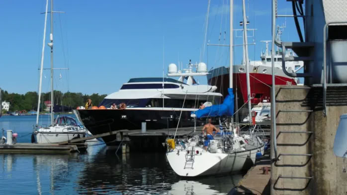 Hier liegt auch dieGaleasse"Albanus"(schwed.). Das Schiff ist ein Nachbau traditioneller åländischer Frachtsegler. Gebaut wurde es 1988 nach einem Vorbild von 1904. Es wurde ausschließlich aus Ålandkiefern gefertigt. Es gehört dem Verein "Skeppsföreningen Albanus r.f" Der Verein bietet Fahrten in die Schärenvon Åland undTurkuan.