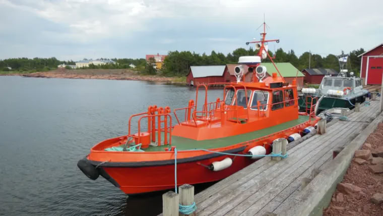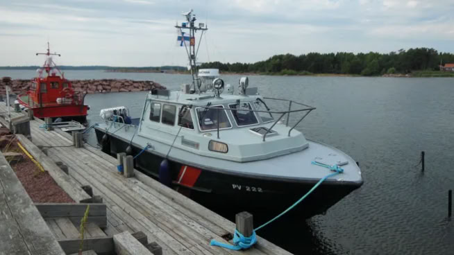 Unweit des Post- und Zollgebäudes ist der Anleger des Grenzschutzbootes. Das schwedische Wort für Grenzschutz prangt am Boot, wahrscheinlich um Touristen diesen Zungenbrecher üben zu lassen.