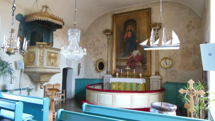 Interessant ist z.B. die hölzerne Madona aus dem 13. JH., der Altar von 1876 wurde gemalt von Bernhard Reinhold und die alten Wandmalereien, die vermutlich genauso alt sind wie die Kirche selbst.