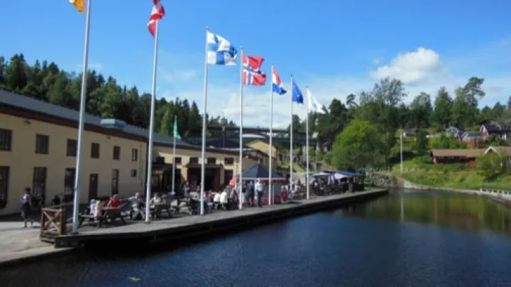 Genug gestaunt, wir fuhren weiter nachHåverud, wo derDalsland-Kanalmehrere Schleusen durchquert. Die größte Sehenswürdigkeit ist aber dasAquädukt, der den alten Flusslauf überbrückt und dabei selbst von einer Eisenbahnbrücke und einer Strassenbrücke überbrückt wird.