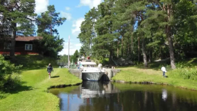 Wie ich oben schon geschrieben habe, fahre ich jetzt schon seit 15 Jahren nach Håverud. Aber ich habe es in all den Jahren nicht geschafft, ein Schiff beim befahren des Aquädukts zu beobachten, geschweige denn, zu fotografieren. In diesem Jahr war es endlich soweit!