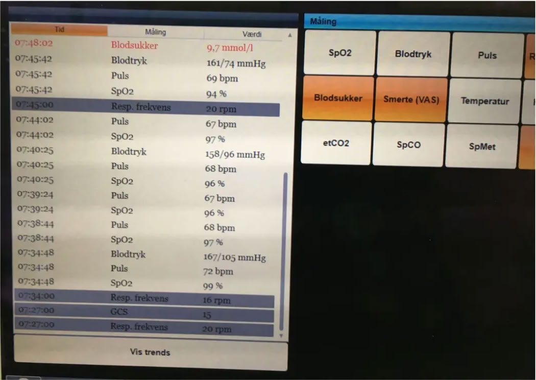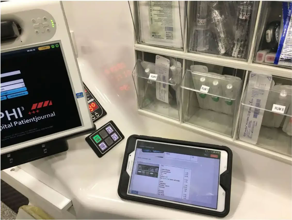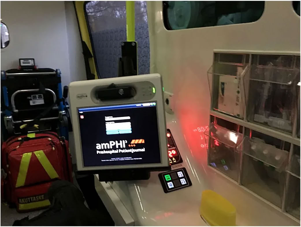 Wie in allen Kliniken werden über viele große Monitore (Touchscreen fähig) alle Daten z.B. über Zimmerbelegung und die mit Rettungsmitteln ankommende Patienten angezeigt. Die Patienten müssen hierbei nicht, wie in Deutschland üblich über Telefon oder IVENA, angemeldet werden, sondern erscheinen automatisch auf dem Monitor der Aufnahme der Zielklinik, die der Sanitäter im Tablett (PPJ) angibt. Das Aufnahmepersonal kann den Patienten auf dem Monitor aufrufen und dabei 1:1 lesen, was auf dem Tablett des RTW geschrieben wird, sowie auch die gesamte Patientenakte anzeigen lassen.Dies ist möglich, weil das Gesundheitswesen in Dänemark verstaatlicht und die Software vereinheitlicht wurde. Diese Programme müssen auch die Privaten Rettungsdienstunternehmen nutzen.