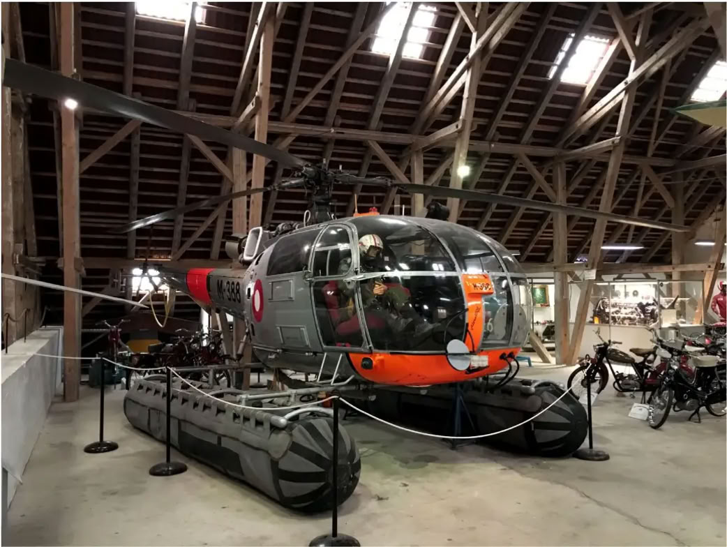 Hier auf Schloss Egeskov steht auch dieser alte Rettungshubschrauber.