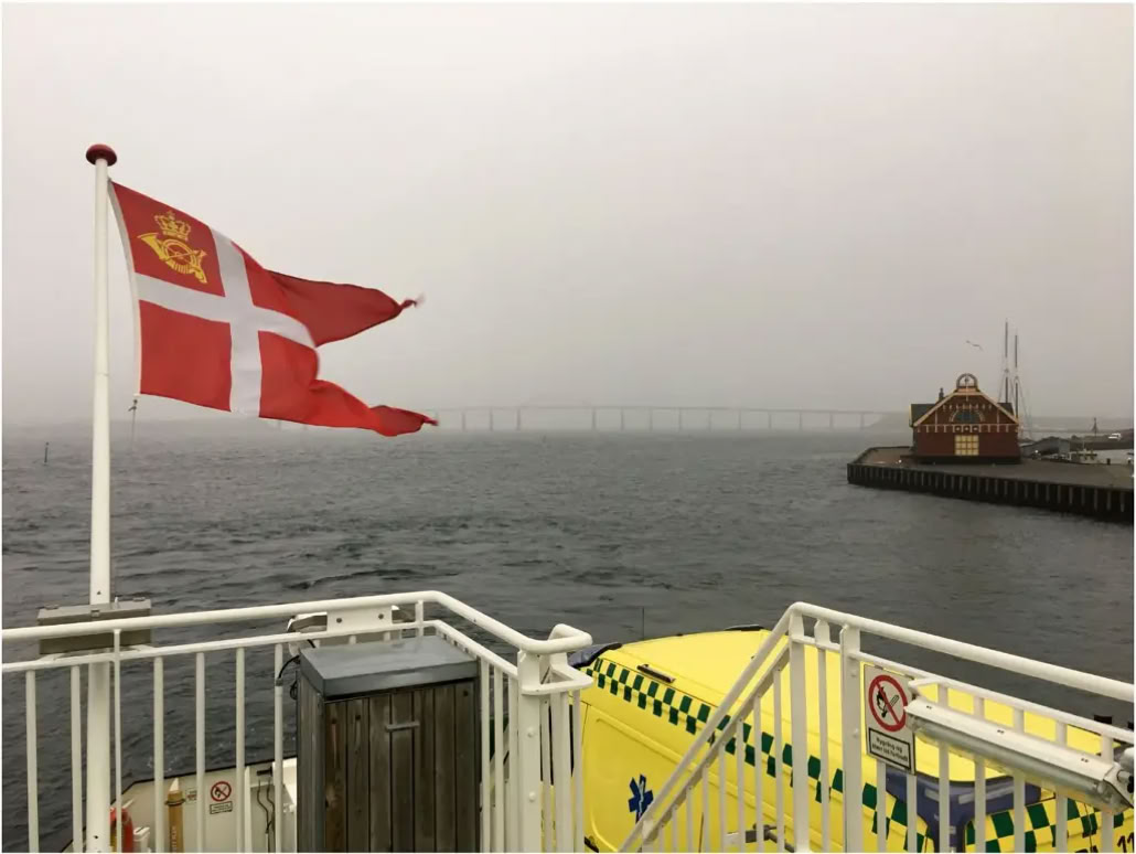Der RTW 513-3561 der Wache Svendborg auf dem Weg zur Insel Strynø.