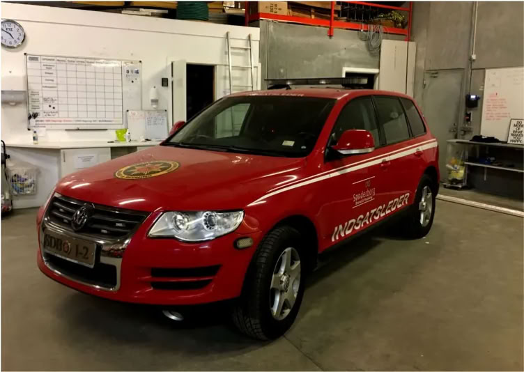 Am Kenzeichen kann man erkennen, dass es sich um ein Fahrzeug der Kommune handeln muss. In Esbjerg ist die Firma Falk mit dem Brandschutz beauftragt, haben aber trotzdem ein Sonderkennzeichen der Kommune.