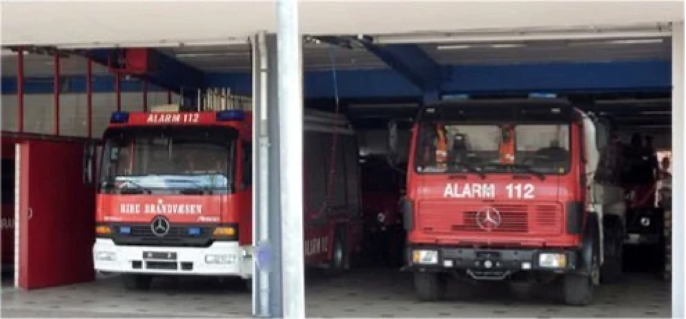 Beim Anblick dieses kleinen Gerätehaus, würde man nicht Vermuten, dass es mit zwei großen Löschfahrzeugen besetzt ist. Einem Autosprøjte (entspricht einem HLF) und einem Tanksprøjte (TLF).
