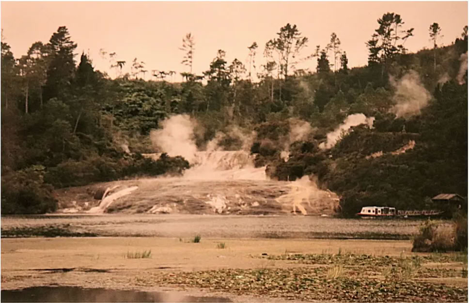 Auch diesen Wasserfall der aus mehreren Thermalquellen gespeist wird, zeugt von der vulkanischen Aktivität, der man überall auf der mittleren Nordinsel begegnet.