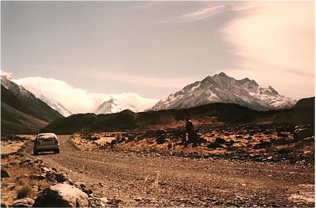 Im Hintergrund der höchste Berg NZ, der 3724 m hohe Mt Cook. Mittlerweile hat er wieder den alten Namen der Maoris „Aoraki“